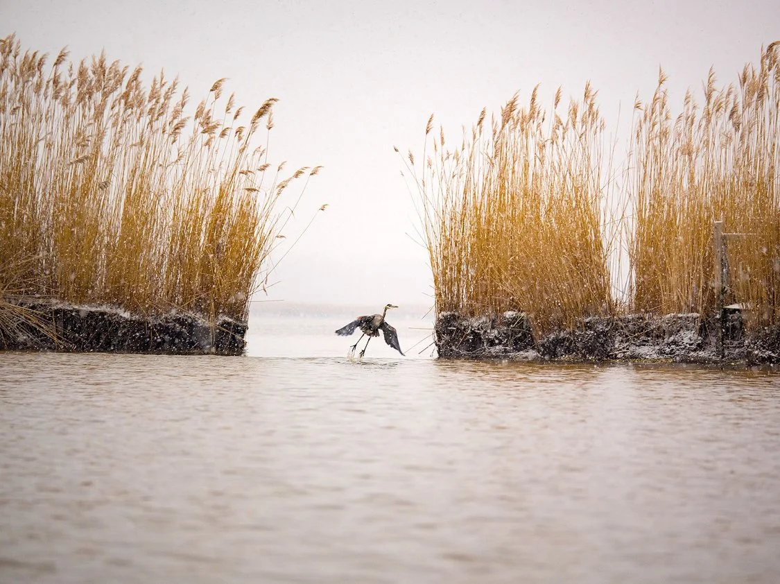 He explains that he often finds inspiration for his photographs in the marshy areas in and around the Bay, where the land and the water meet. This is where the above-water life he is looking for is so apparent, he says. He also seeks the edges of the days to work, from first light to sunrise and from late afternoon into dusk, when he finds his subjects “bathed in warm light and with long, revealing shadows.”