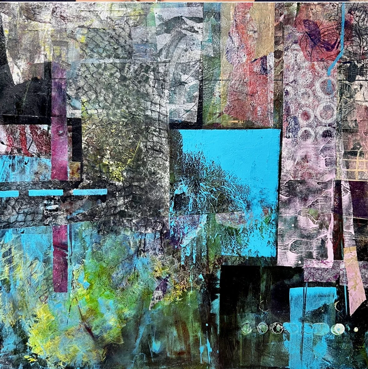 In time she felt emotionally strong enough to start looking at a series of paintings which had survived the flood on a high studio shelf. These works were based on reflections on an afternoon she spent in a park (Parc Andre Citroen) in Paris and which she refers to as her PAC series. She says that after the flood she saw these works through very different eyes and began reworking most of them. “I’m still working on the series and it becomes more exciting each day” she says. “As tragic as the flood was, I’ve grown exponentially as an artist because of it and I am grateful.
