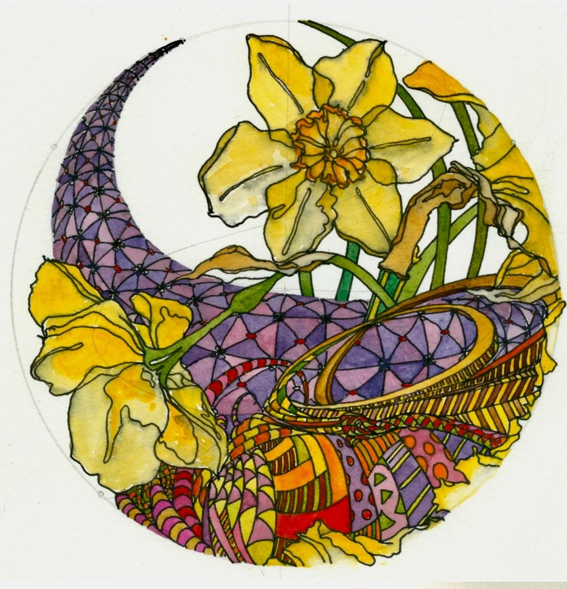 Although from New Jersey, Chris Carter is no stranger to Cambridge. Over the years she has shown her work at the Dorchester Center for the Arts and at the Main Street Gallery. She has also taught several workshops at both venues, inspiring many students, some of whom she now counts as friends. “Creating art, on any level, can be a healing, meditative experience. Through art, I’ve survived many difficult periods of life…..It is my hope that by sharing my personal experience of art as a daily practice my story and my work will inspire others to take pen or brush in hand.”